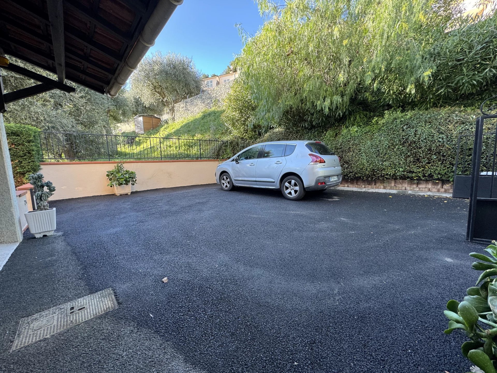 Double garage, cour avec possibilité de stationner plusieurs véhicules.